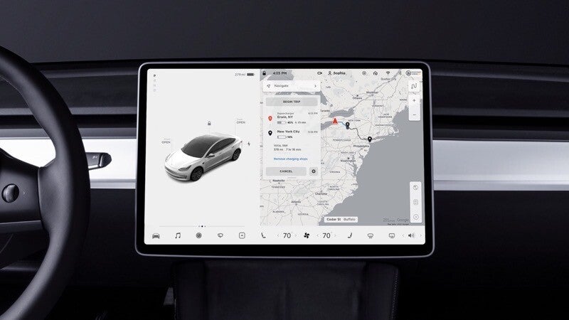 Voor snelladen optimaliseert Tesla automatisch de batterijtemperatuur als je een Supercharger als bestemming instelt.